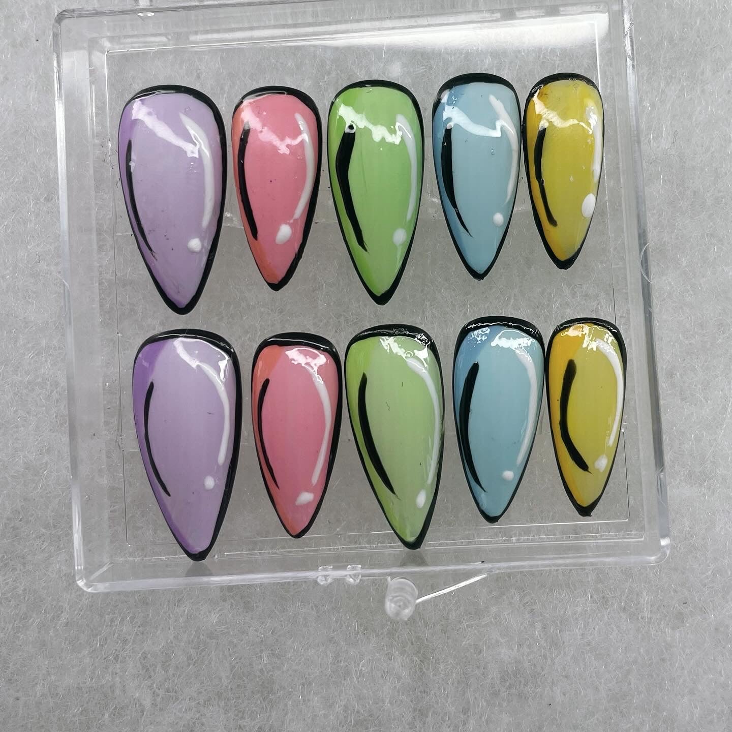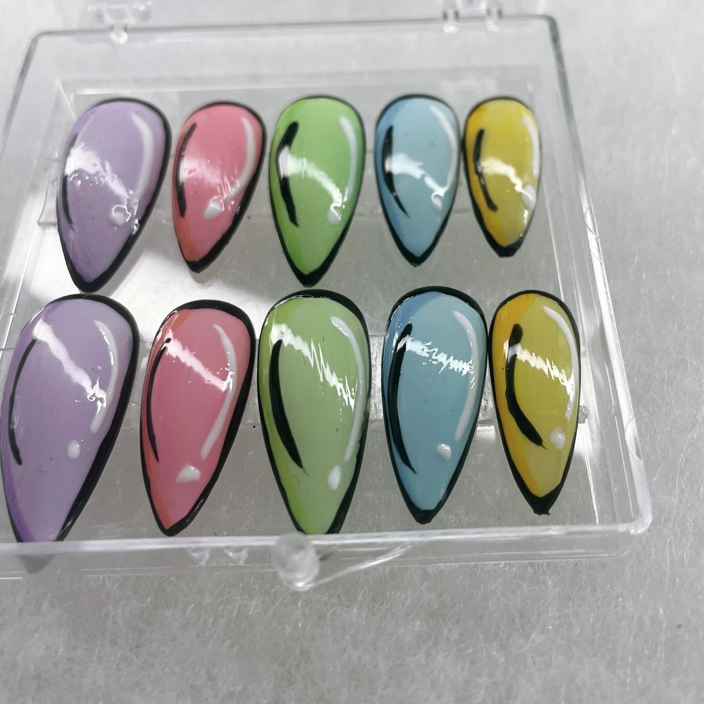 Affrontez l'inconnu avec ces ongles cartoons! Transformez votre routine beauté en aventure et ajoutez une touche amusante à votre style. Mettez-vous au défi d'essayer quelque chose de nouveau avec ces accessoires faciles à appliquer. Osez prendre des risques et exprimez votre créativité avec ces ongles décalés !