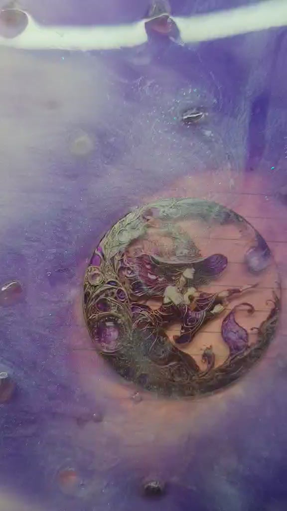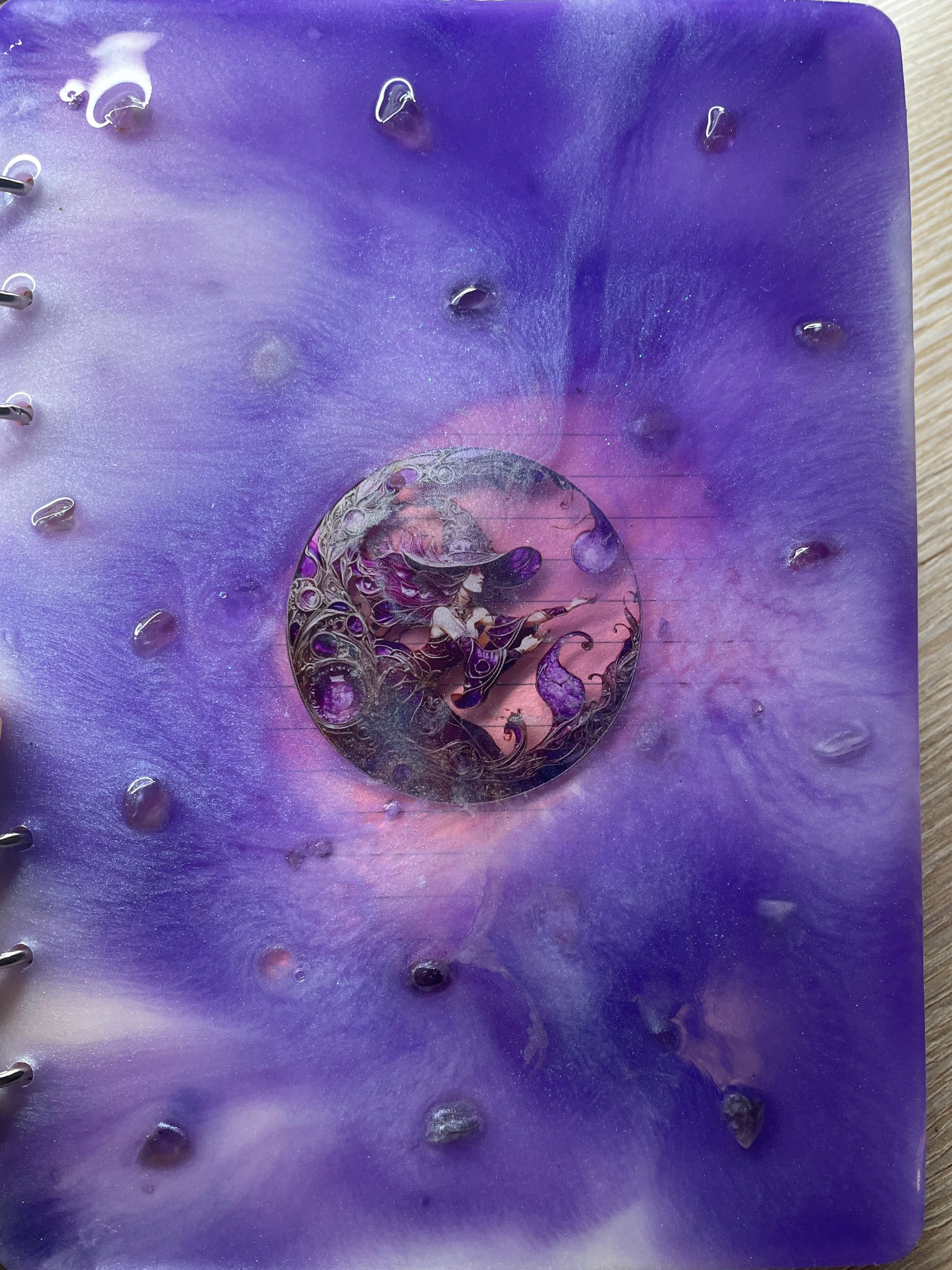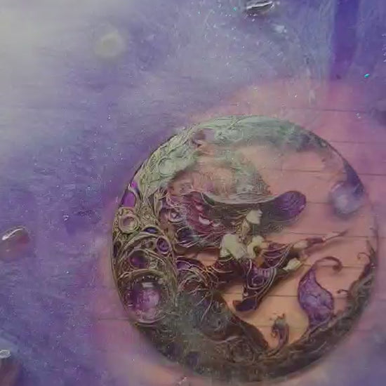 Incrustation d’une sorcière 3D et de vrais pierres naturelles d’améthyste.